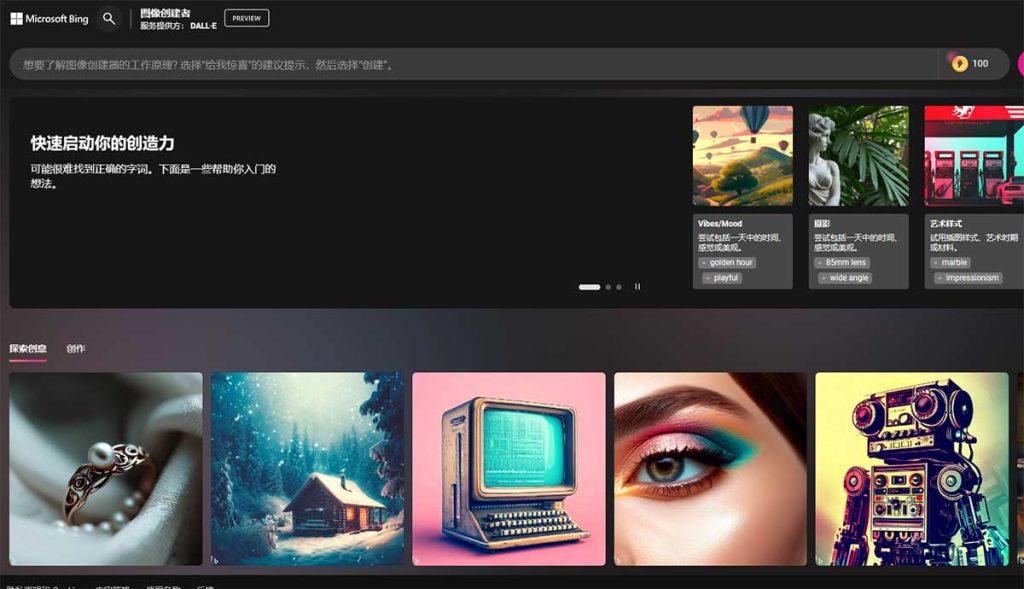 2、输入您的提示词,在输入框中描述您要生成的图像,然后单击“创建”。